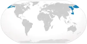 كان حوت شمال الأطلسي الصائب منتشراً في المحيط الهادي خلال شريط يمتد من اليابان، ويمر عبر مضيق بيرنغ، وصولاً إلى سواحل أمريكا الشمالية حتى كاليفورنيا، بينما يندر رؤيته في مثل هذه المناطق في الوقت الحالي، ويتمركز بشكل عام في بحر أوخوتسك وشرق بحر بيرنغ.