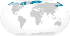 ![]() التوزع الجغرافي للحوت المقوس الرأس | |