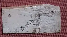 ![]() قطعة خزف مزخرف منقوش عليها اسم حورس عحا، معروضة في المتحف البريطاني. | |