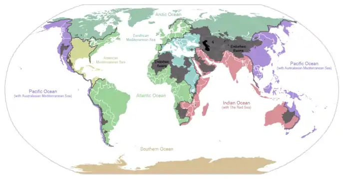 المناطق المغلقة، على النقيض من المناطق المفتوحة exorheic التي تتدفق إلى المحيط في أنماط محددة من الناحية الجيولوجية، هي النظم الهيدرولوجية مغلقة. المياه السطحية من نزيف مواقع المحطات الداخلية حيث يتبخر الماء أو تتسرب إلى باطن الأرض، وكان لا يحصلون على الوفاء في البحر،[1] وتشمل المسطحات المائية المغلقة بعض من أكبر البحيرات في العالم، مثل بحر آرال و بحر قزوين، وقطع أكبر هيئة المالحة في العالم من المياه قبالة من المحيط.[2]