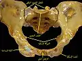| يتكون من | الحوض العظمي ، وعظم الورك ، وعضو جنسي ، وأمعاء غليظة ، وأرداف ، وتجويف الحوض |