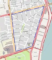 و تقع منطقة "بين السرايات" بين اربع شوارع حيوية وهى: