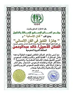 |CitationClass=تم تجاهله (مساعدة) - "خالد عبدالرحمن يتلقى هدية نادرة من الذهب الخالص قيمتها 400 ألف ريال". ليالينا. مؤرشف من الأصل في 4 ديسمبر 2020. اطلع عليه بتاريخ 04 ديسمبر 2020. الوسيط