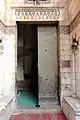 الواجهة الغربية هي الواجهة العمومية هي واجهة كبيرة مبنية بالحجر ينتهى طرفها باب كسى بالرخام وكتب علية ايات من القرآن بالرخام الأبيض.