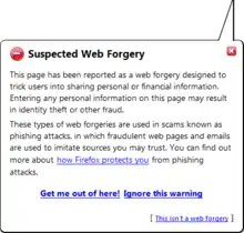 |CitationClass=تم تجاهله (مساعدة) - "Bon Echo Anti-Phishing". Mozilla. مؤرشف من الأصل في 23 أغسطس 2011. اطلع عليه بتاريخ June 2, 2006. الوسيط