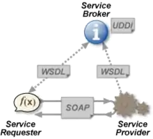 UDDI أو Universal Description, Discovery and Integration وهو دليل على الإنترنت لسرد خدمات الويب المقدمة من الجهاز الخادم ويتيح لها التعرف على بعضها، أي أنه كدليل الهاتف.