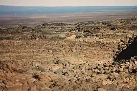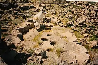 شهدت المنطقة عدداً من الثورانات البركانية العنيفة والمتعاقبة الصَّادرة عن بركان جبل العرب، مما سبَّب خراباً كبيراً فيها أكثر من مرة.[11] ولا زالت آثار هذه الثورانات ظاهرة في بقايا العظام المتحجّرة المنتشرة في أنحاء المكان، بعد أن باغتتها الحمم البركانية عقب الثورانات وقد عُثِر بين الحيوانات على آثار شرايينٍ وجلودٍ وأجنّة، مما يثبت أن الحمم فاجأتها وداهمتها وهي حيَّة. وُضِعت نظرية الثوران البركاني بخصوص العظام المتحجرة بالمنطقة للمرة الأولى في سنة 1954، إلا أن التحليلات بيَّنت لاحقاً أن العظام كلها تعود إلى حيواناتٍ، مثل الأغنام والماعز والغزلان والجمال، لكن لا أثر لعظامٍ بشريّة.[1][13] ولذلك فإنّ بعض النظريات تقول أنها كانت من تجميعٍ بشريٍّ لأغراضٍ صناعيّة، لا نتيجة كارثة طبيعية.[18] تشيع عموماً بالمنطقة بقايا العظام المتحجرة حتى حدّ التبلور والمحروقة والمُتكلّسة، حيث يُقدَّر عدد الحيوانات التي تعود إليها هذه البقايا بنحو 10,000 إلى 40,000 حيوان، ويُقدَّر حجم بقاياها بنحو 800 متر مربع، تعود في معظمها إلى نحو الألف الثاني قبل الميلاد.[7][18]