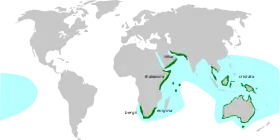 | - | T. b. thalassina | ستريسمان، 1914م | غرب المحيط الهندي | صغير وباهت اللون، ويكون أكبر وأقل بهات في جنوب نطاق تكاثره | 2,550-4,500 فرد في شرق أفريقيا وسيشل |