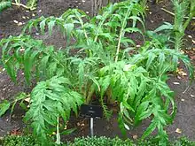 Cultivated cardoon foliage, Madrid Royal Botanical Garden, without leaf spines.