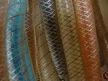 لتحقيق مقاومة ضغط أفضل تقوى الخراطيم بالألياف أو بأسلاك المعدنية، وغالبًا ما تكون مصنوعة من الحديد الصلب، حيث يتم إدخال الأسلاك المعدنية في صناعة الخراطيم ويتم إدخالها في المادة المستخدمة في صناعة الخراطيم، حيث تعزز الخراطيم بأشكال شبية بالحلقات المحيطية أو الحلزونية، للحفاظ على هذه الهياكل المموجة لتقاوم الضغط الداخلي.