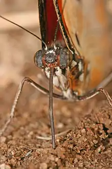 فراشة تملك قرني استشعار وخرطوم واحد.