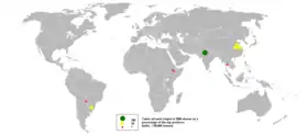 | الدولة | الإنتاج (بالأطنان) | ملاحظات | ||