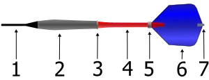 يتم رفع لوحة السهام المريشة إلى علو تبلغ فيه الرمية الصائبة 1,73 متر من الأرض. وخلال المباريات يقف اللاعبون على بعد 3,73 متر أو 3,44 مترًا، وهما المسافتان اللتان تسمح بهما قوانين اللعبة. ويأخذ كل لاعب دوره برمي ثلاثة سهام يبلغ طول كل منها 31سم، تقتطع الرميات التي أصابت هدفها من مجموع مبدئي يساوي في أغلب الأحيان ما مجموعه 6301 أو 1001 أو 3001. ويجب على الفائز أن يبدأ وينهي اللعبة بإصابته الخاتم الثنائي أو الرمية الصائبة الداخلية. ويمكن أن يجري عدد من الألعاب الأخرى بلعبة السهام المريشة. ففي لعبة الكريكيت يحاول فريق الضاربين تسجيل أكبر عدد من النقاط. وفي لعبة البولينج يحاول كل فريق إحراز أكبر عدد من النقاط من خلال إصابته للرميات الصائبة الداخلية. أما لعبة حول الساعة فهي لعبة فردية يحاول كل لاعب فيها رمي سهم مريش داخل كل جزء مرقم بالتتابع.