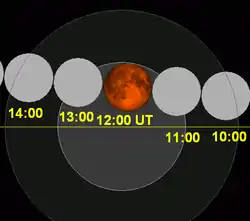 ![]() The Moon passes right to left through the Earth's shadow. | |