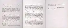 وقد عُينا جون نيكولاي وجون هاي أُمناء على أوراق لينكولن من قبل ابنه روبرت تود لينكولن في عام 1874.[29] بعد ظهورها في مقال كتبه جون نيكولاي في عام 1894، كانت نسخة نيكولاي ضمن الأوراق التي انتقلت لهاي بواسطة ابنة نيكولاي قرب وفاتهفي عام 1901.وبدأ روبرت لينكولن البحث عن النسخة الأصلية في عام 1908، والذي نتج عنه اكتشاف نسخة مكتوبة بخط اليد ضمن الأوراق الخاصة بجون هاي وهي النسخة التي تعرف ب "نسخة هاي" أو "مسودة هاي."[29]