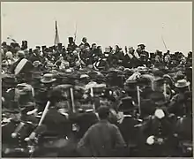 خطاب جيتيسبيرغ هو خطاب ألقاه أبراهام لينكولن رئيس الولايات المتحدة، ويعد أحد أكثر الخطابات شهرة في التاريخ الأمريكي.[4] وقد ألقاها الرئيس لينكولن أثناء الحرب الأهلية الأمريكية، في ظهر يوم الثلاثاء، التاسع عشر من نوفمبر عام 1863، عند تدشين مقبرة الجنود الوطنية في مدينة جيتيسبيرغ، بولاية بنسلفانيا. وكان ذلك بعد مُضي أربعة شهور ونصف على هزيمة جيوش الكونفدرالية الأمريكية على أيدي جيوش الاتحاد في معركة جيتيسبيرغ.