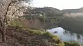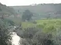 وتقع على الضفة الغربية للنهر ويوجد لها جسر وحيد للعبور إلى الضفة الشرقية. وتسمى الأراضي الزراعية التي تقع على الضفة الشرقية لنهر العاصي الأزوار وتروى من النهر أما الأراضي الزراعية التي تقع في الجهة الغربية للبلدة فهي تروى عن طريق الأبار الارتوازية، ومياه سد الساروت الذي يقع في الجهة الشمالية الغربية للبلدة ويبعد عن مركزها حوالي 3 كم.