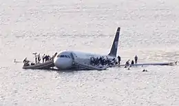 ![]() طائرة خطوط الولايات المتحدة رحلة 1549 تطفو على نهر هدسون | |