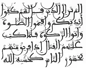 - الخط القرطبي أو الأندلسي: وتكثر فيه الانحناءات والاستدارات، وقد استخدم في نسخ المصاحف والكتب.