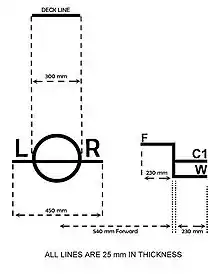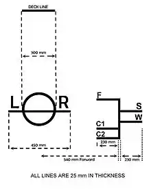 - خط الحمولة الشتوية هو واحد على ثمانية وأربعين من مسودة الحمل الصيفي تحت خط الحمل الصيفي.