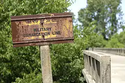 يتم تمييز الخط نفسه بسلسلة من 1292 علامة متطابقة يتم وضعها على فترات عبر شبه الجزيرة.[9] الجانب المواجه للشمال من العلامات مكتوب باللغتين الكورية والصينية والإنجليزية على الجانب الجنوبي المواجه. تظهر على العلامات الآن عوامل التعري والصدأ.[10]