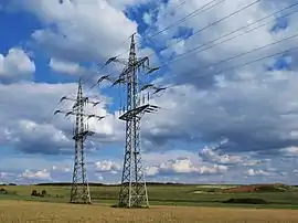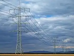 لمعظم الأبراج لنقل التيار المتردد تحمل في العادة 3 أو 6 كابلات . وتتبادل الكابلات موقعها بين برج وبرج وتختلف مسافاتها إلى الأرض . بهذه الطريقة تكون سعتها متناظرة في نظام الثلاثة كابلات وتتوازن طاقتها بالنسية لتأثير الأرض عليها.
