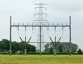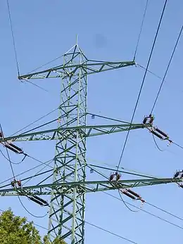 يعمل الهواء كعازل بين الكابلات التي تحمل التيار . ويمكن استخدام أبراج من الخشب أو الأسمنت المسلح أو قضبان حديدية متشابكة لبناء الأبراج وذلك لجهد أقل من 50 كيلوفولط.أما للجهد أعلى من 50 كيلوفولط فتستخدم في أوروبا أبراج الحديد المتشابك، للجهود أعلى من 110 كيلوفولط تستخدم أيضا أنابيب حديدية متشابكة لبناء الأبراج. وبغرض الحماية من التفريغات الكهربائية الصاعقة يحافظ على أن يكون أرتفاع الكابلات عن الأرض 4 متر على الأقل للجهد أقل من 1000 فولط، أما للجهود أعلى من 1000 فولط (1 كيلو فولط) فلا بد من زيادة ارتفاع الكابل عن ذلك عن الأرض.