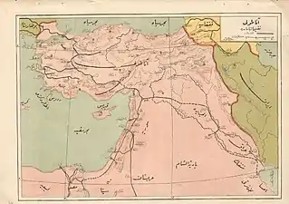 ![]() خارطة توضح مسار خط حديد الحجاز | |