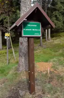 Wooden mark of the 15th meridian east مرورا عبر the Ještěd-Kozákov Ridge. Made by local group called Ještěďáci.