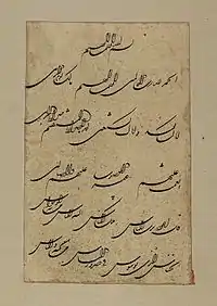 وكان أشهر من كان يكتبه بعد الخطاطين الإيرانيين محمد هاشم الخطاط البغدادي ومحمد بدوي الديراني بدمشق، ولكن يبقي السبق للخطاطين الإيرانين بلا منازع.