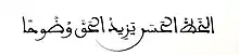 عبارة بالخط المغربي المبسوط، ونصه كما يلي: "الخط الحسن يزيد الحق وضوحا" - المجوهر، يستعمله الملك في إعلان الظهائر[13]