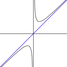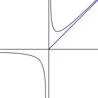 مثلاً الدالة ƒ(x) = x−1/x لها خط تقارب مائل، هو الخط y = x أي أن (m = 1, n = 0) (انظر الرسم إلى اليسار). وبتطبيق النهاية المذكورة أعلاه