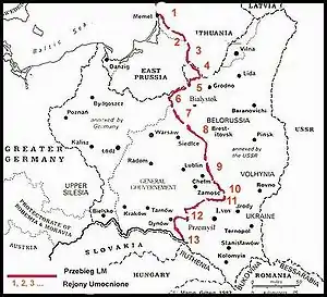 - 3. المنطقة المحصنة كاوناس (خط من يورباركاس إلى كالفاريا و 105 كيلومترا، و10 مراكز مقاومة، 31 مخابئ مبنية و599 تحت الإنشاء).