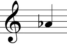 - Benward & Saker (2003). Music in Theory and Practice, Vol 1, p.6. McGraw-Hill, Seventh edition. "Flat (♭)—lowers the pitch a half step."