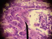 صورة بالمجهر الضوئي لمقطع يظهر الخلايا المجاورة للكبيبات