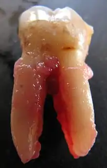 - Zadik Y, Sandler V, Bechor R, Salehrabi R (2008). "Analysis of factors related to extraction of endodontically treated teeth". Oral Surg Oral Med Oral Pathol Oral Radiol Endod. 106 (5): e31. doi:10.1016/j.tripleo.2008.06.017. PMID 18718782. الوسيط