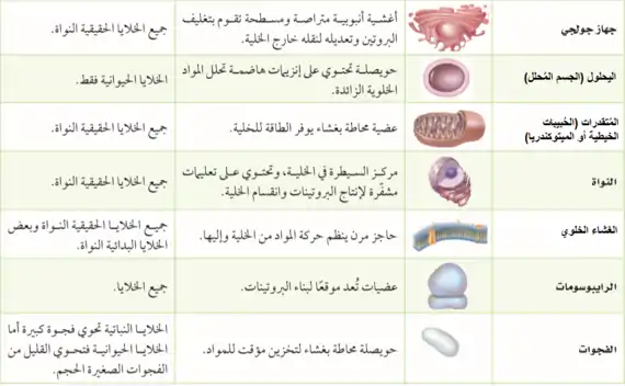هنا أسماء مكونات الخلية مع أسماء لمرادفاتها