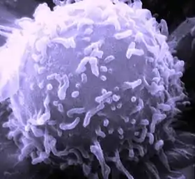 ![]() خلية لمفاوية في الإنسان وكما تظهر بواسطة مجهر إلكتروني ماسح. | |