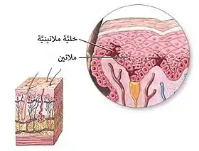![]() خلية ميلانينية وميلانين | |