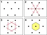 - يتم رسم مستو عمودي على كل من المستقيمات التي تربط نقطة الشبيكة الأساسية بالنقاط المجاورة لها في الشبيكة.