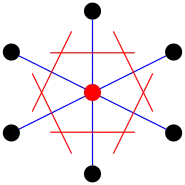 تمثل المساحة السداسية المحصورة داخل الخطوط الحمراء خلية ويغنر-سيتز المحيطة بنقطة الشبيكة المُعلمة باللون الأحمر.