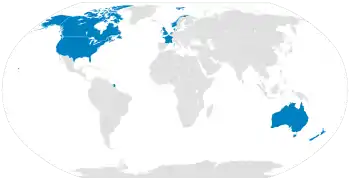 في 1948 تمَّ تمديد المُعاهدة لتشمل كندا، والنرويج في 1952، والدنمارك في 1954، وألمانيا الغربية في 1955، وأُستراليا في 1956، ونيوزيلندا في 1956. [13] لتشارك هذه الدول في التحالف بصفتها "أطراف ثالثة"، وبحلول 1955 تمَّ الاعتراف رسميًا بالوضع الرسميّ لدول العيون الخمس المُتبقية في نسخة أحدث من المُعاهدة البريطانيَّة الأمريكية.[14]