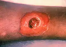 | الأعراض | التهاب الحلق ، وحمى ، والتهاب اللوزتين ، وقصور القلب ، واعتلال الأعصاب المحيطية ، وتورم |