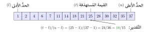 إذا لم تكن القيمة المستهدفة في المصفوفة، فإن عدد مرات تكرار الإجراء يُحسب وسطياً بالعلاقة: