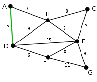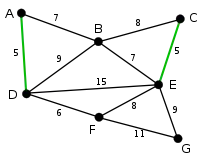 AD و CE هما الأقل وزنًا بوزن 5 لذلك تم اختيار AD بشكل عشوائي |