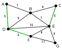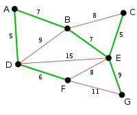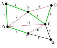 ↑ 1.0 1.1 Cormen, Thomas; Charles E Leiserson, Ronald L Rivest, Clifford Stein (2009). Introduction To Algorithms (Third ed.). MIT Press. p. 631. ISBN 0262258102. 2.↑ Kruskal, J. B. (1956). "On the shortest spanning subtree of a graph and the traveling salesman problem". Proceedings of the American Mathematical Society 7: 48–50. doi:10.1090/S0002-9939-1956-0078686-7. JSTOR 2033241. Thomas H. Cormen, Charles E. Leiserson, Ronald L. Rivest, and Clifford Stein. Introduction to Algorithms, Second Edition. MIT Press and McGraw-Hill, 2001. ISBN 0-262-03293-7. Section 23.2: The algorithms of Kruskal and Prim, pp. 567–574. Michael T. Goodrich and Roberto Tamassia. Data Structures and Algorithms in Java, Fourth Edition. John Wiley & Sons, Inc., 2006. ISBN 0-471-73884-0. Section 13.7.1: Kruskal's Algorithm, pp. 632..