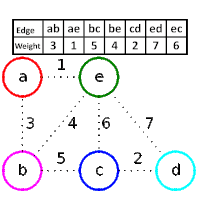 سيتم تحديد BE حيث هو الاقل وزن من الطرق التي لم يتم ختيارها اما BC وDE وEF تم تحديهما بالأحمر لأنها كانت ستصنع دوائر |
