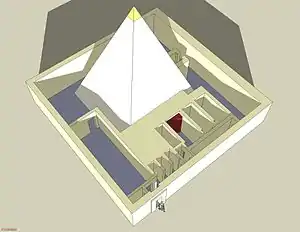 و كان لوريه يعتقد في البداية أن قبر خويت مجرد مصطبة لا هرم. و التنقيب في ستينات القرن العشرين من قبل ماراجيوغليو و رينالدي اقترح لأول مرة أن خويت قد دفنت في هرم. و تم العثور على بقايا بناء تعود إلى أنقاض معبد جنائزي صغير كذلك. و قد أكدت حفريات أخرى في عام 1995 من قبل عالم الآثار المصري الدكتور زاهي حواس أن قبر خويت كان هرماً. و كشفت الحفريات في الهرم نفسه غرفة دفن مع تابوت من الجرانيت الوردي. و يقع المعبد الجنائزي المرتبط بمجمعها الجنائزي هذا إلى الشرق من الهرم. و شمل المعبد غرفة قرابين مع باب كاذب و مذبح. و قد زينت جدران المعبد بمشاهد لحاملي القرابين.[2]