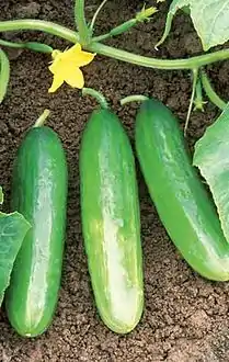 ![]() ثمرات الخيار بُعيد قطفها طازجةً من الحقل | |