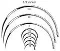 - 1/2 دائرة. الأنواع الفرعية لهذا النوع تشمل (من ألأكبر إلى الأصغر) CT و CT-1 و CT-2 و CT-3.[1]